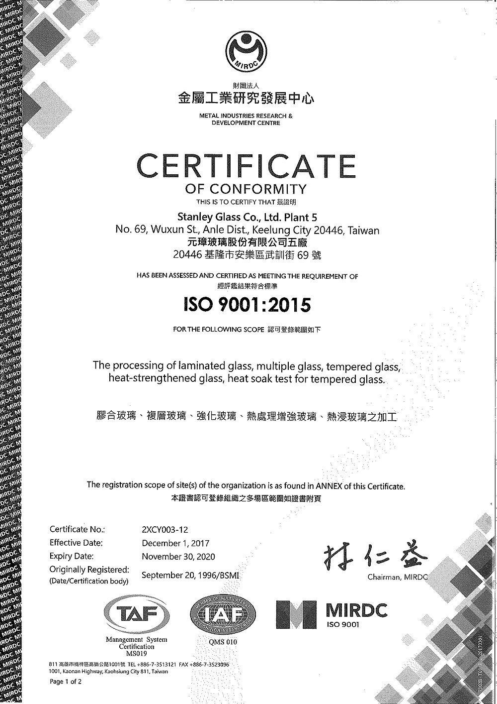 - 耐壓耐衝擊:強度約為一般平板玻璃的3~5倍。(依ASTM要求10000psi以上。)